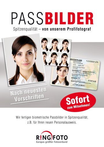 Wir fertigen Ihnen Biometrische Passbilder nach den aktuellen amtlichen Vorschriften für Personalausweis, Reisepass, Führerschein, Gesundheitskarte und alle anderen amtlichen Zwecke.